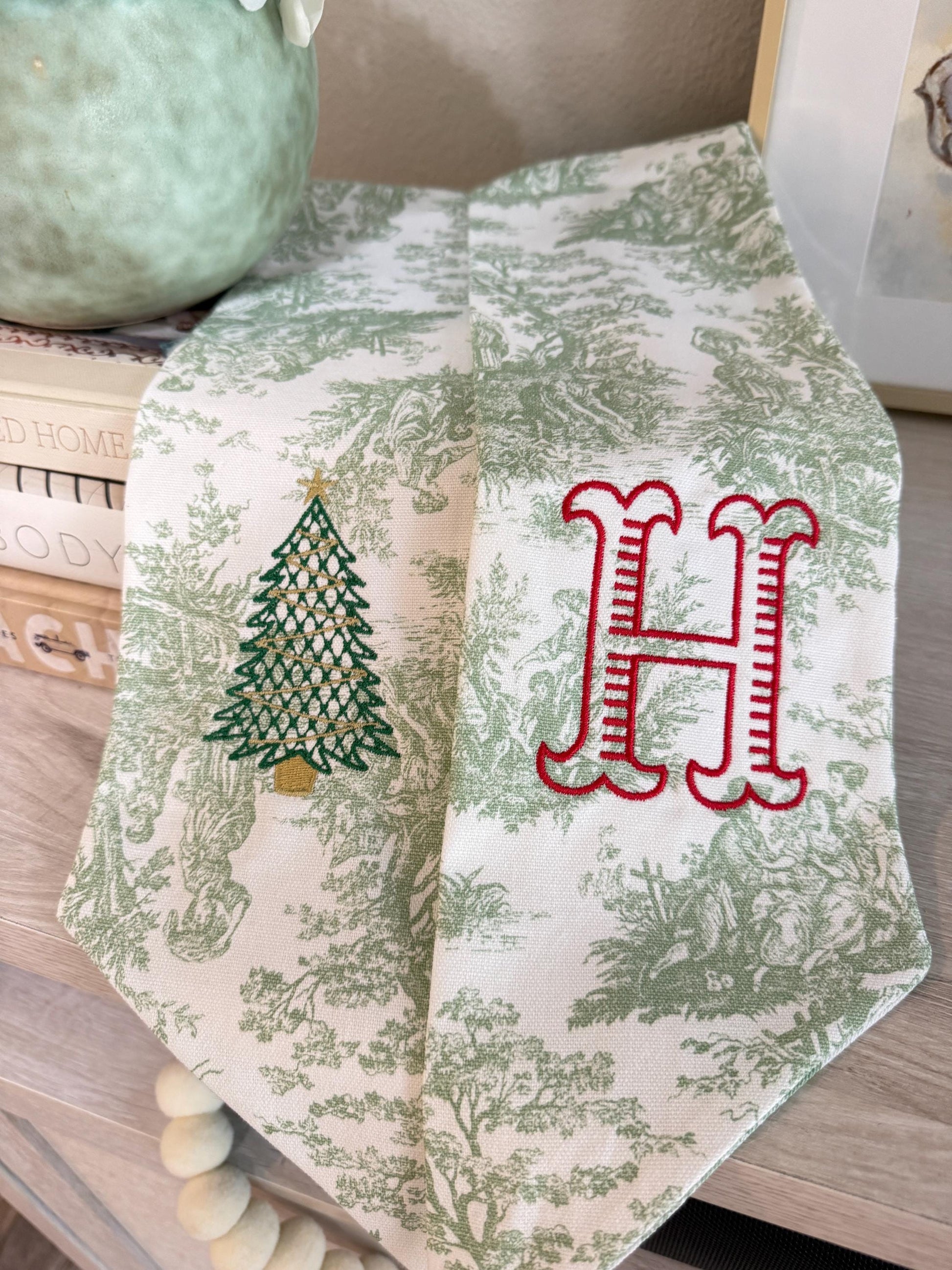 Add timeless elegance to your holiday décor with this Christmas wreath sash, made from beautiful green toile fabric! Whether you're decorating a front door, fireplace mantel, or entryway mirror, this sash brings a sophisticated and unique twist to your seasonal styling.