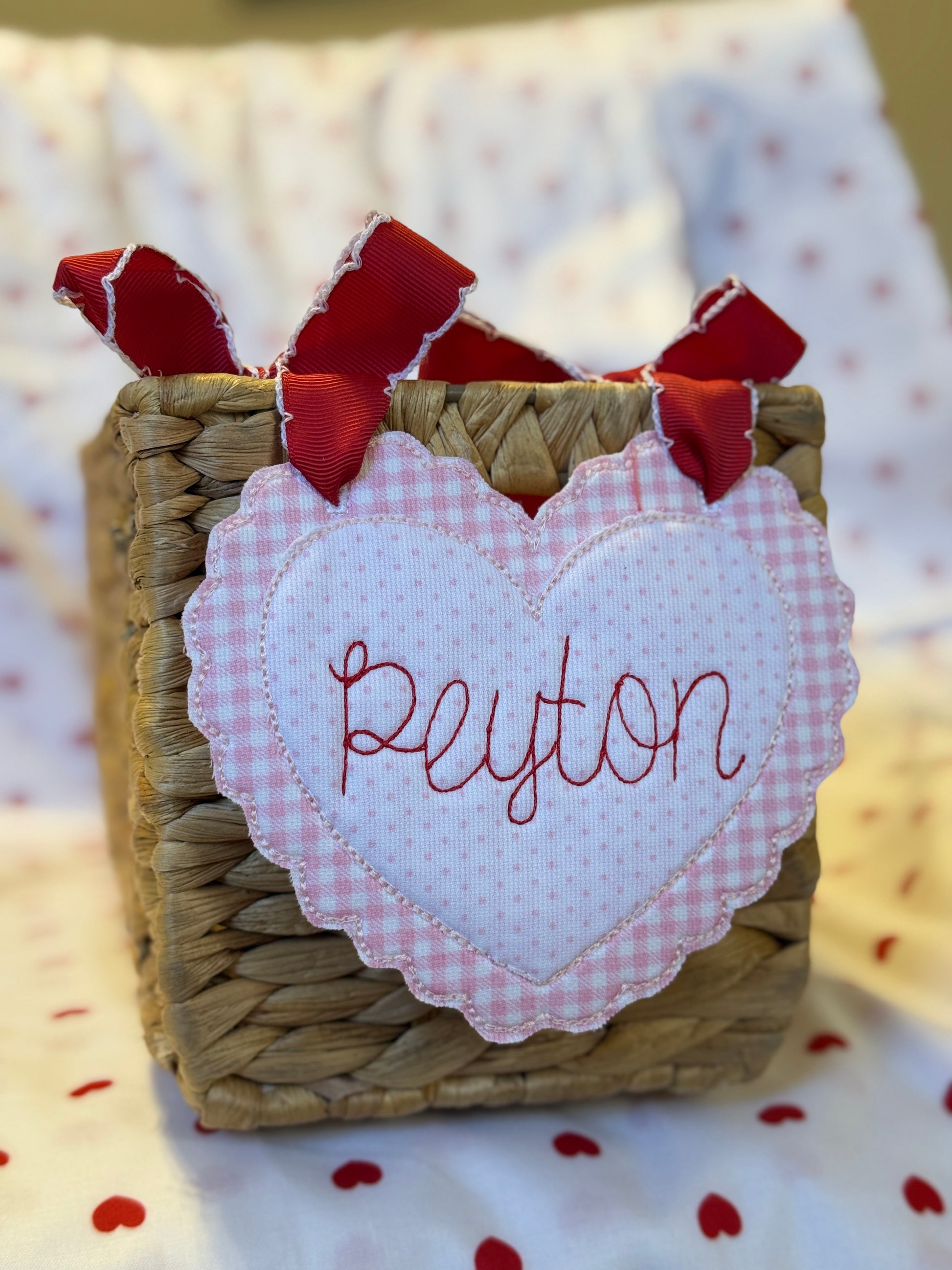 Embroidered Applique Valentine's Day Heart Basket Tag